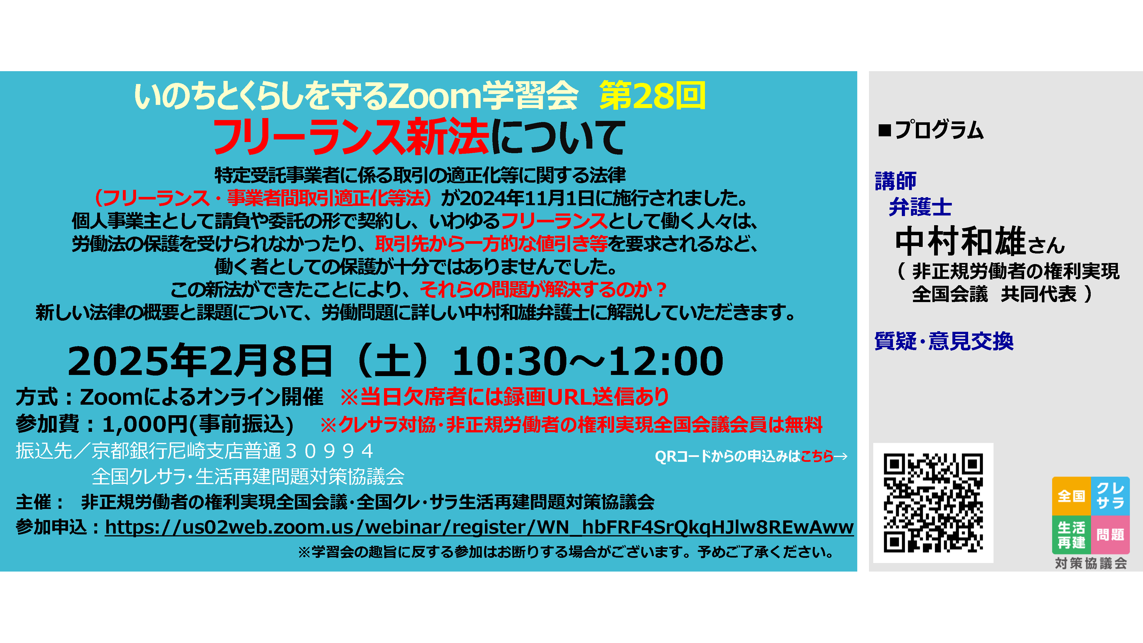 お知らせチラシを開く損保9条の会・生保9条の会 合同講演会(2024年9月8日up)